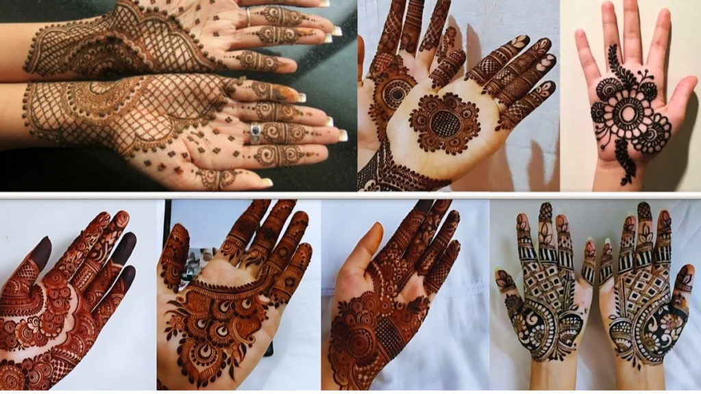 पारंपरिक और आधुनिक मेहंदी डिज़ाइन में आजकल अरबी शैली, मोर के मोटिफ गोलाकार पैटर्न का खास चलन है। बच्चों और दुल्हनों के लिए ये डिज़ाइन सरल, सुंदर हर मौके के लिए उपयुक्त हैं1