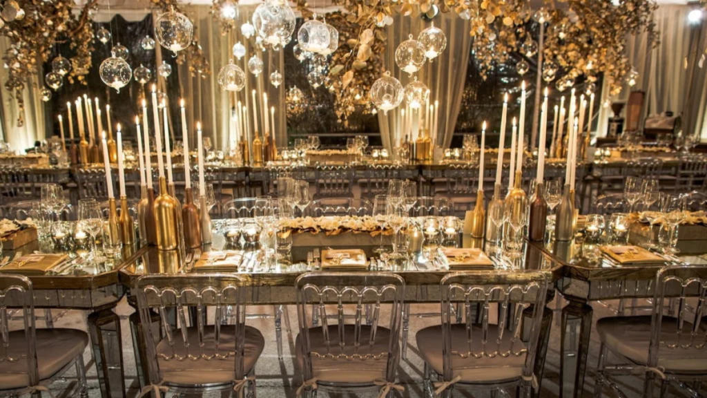 डेकोरेशन में सिल्वर और गोल्डन रंगों का खास इस्तेमाल किया गया।