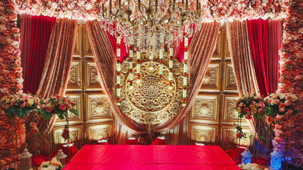 मंडप को पारंपरिक और शाही अंदाज में डिजाइन किया गया था।