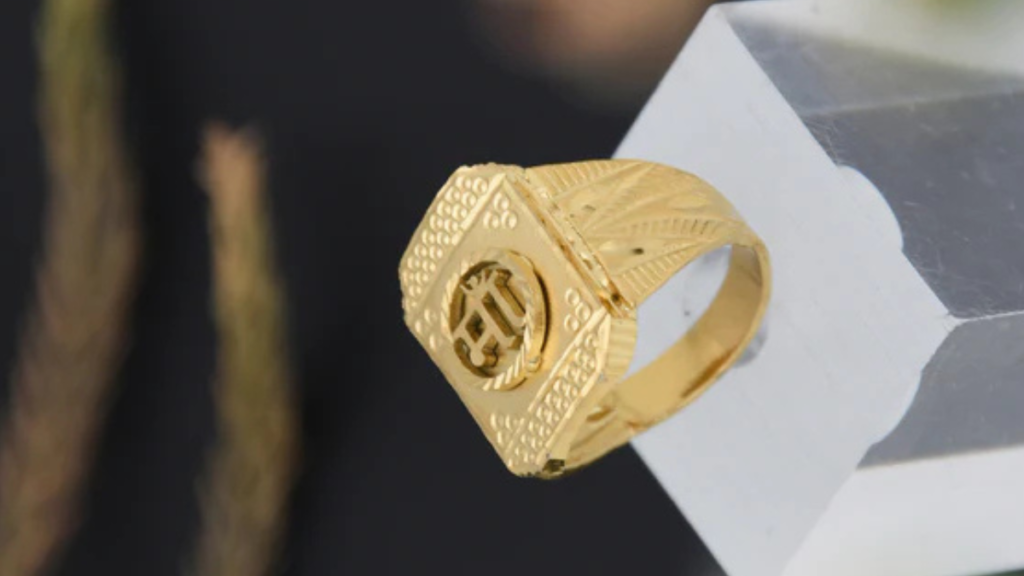 डिज़ाइन में सुनहरी अंगूठी और उसके भीतर 2024 की महफूज़ शादी तारीखें।