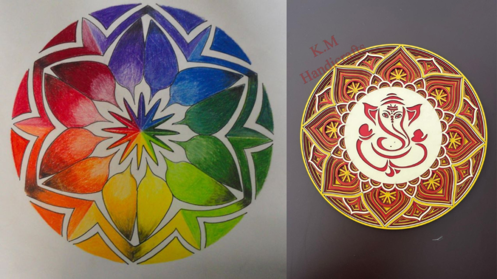 मंडला (Mandala) पैटर्न में हर शुभ मुहूर्त को रंग-बिरंगे घेरे में दर्शाएं।