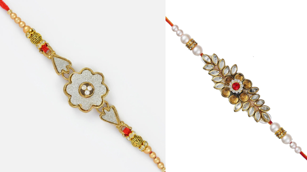 यह राखी हर भाई की कलाई पर रॉयल लुक देती है और परंपरागतता के साथ एलिगेंस भी दिखाती है।