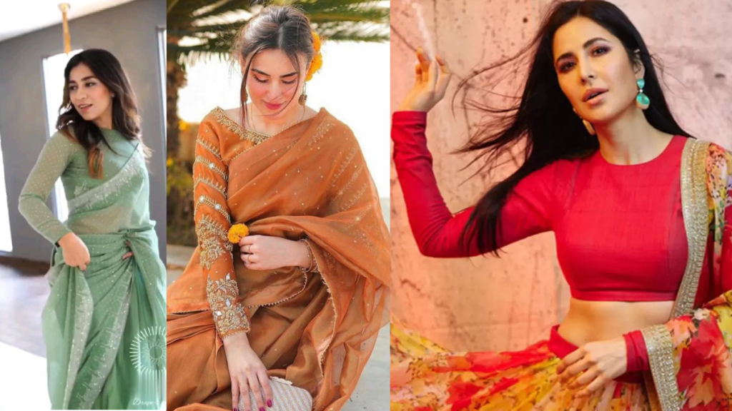 फुल स्लीव वाले ब्लाउज पारंपरिक और रॉयल लुक देते हैं। भारी कढ़ाई या सिंपल डिज़ाइन दोनों ही इस शैली में खूब जचते हैं।