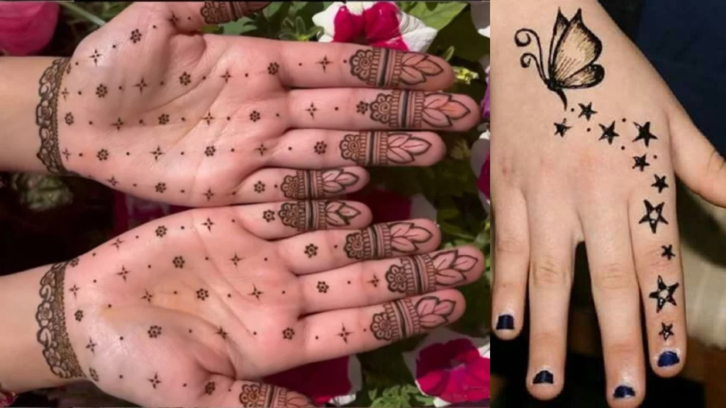 छोटे-छोटे सितारे बच्चों के हाथों को आकर्षक बनाते हैं। यह डिज़ाइन बनाना भी बहुत आसान है।