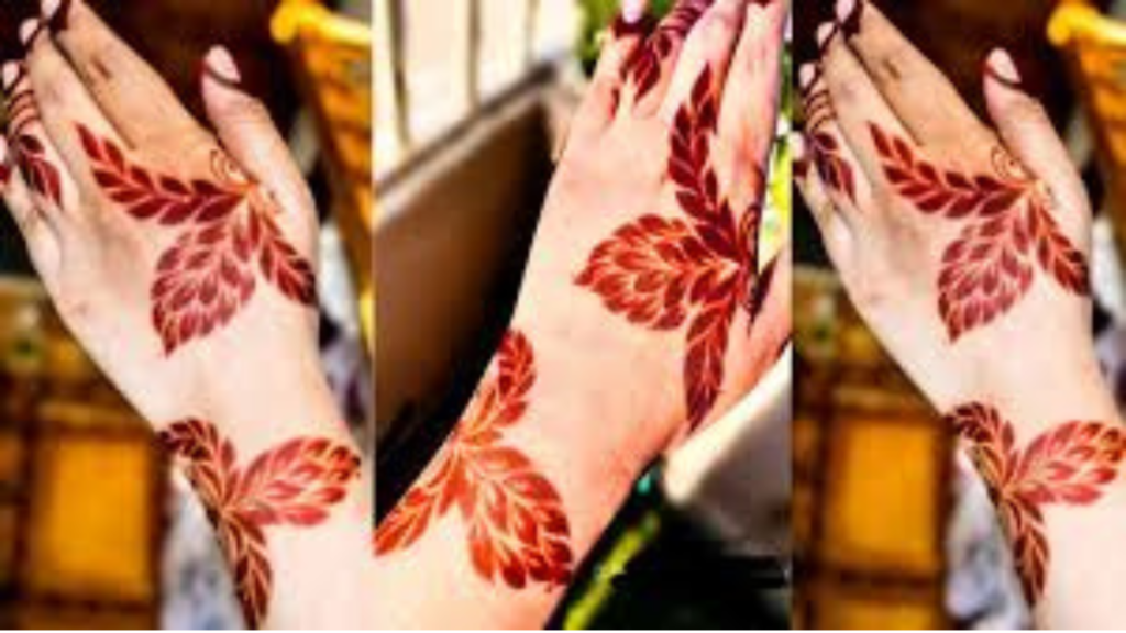 पत्तियों की छोटी-छोटी आकृतियाँ बच्चों के हाथों को नैचुरल और प्यारा लुक देती हैं। इसे उंगलियों या हथेली पर बनाया जा सकता है।
