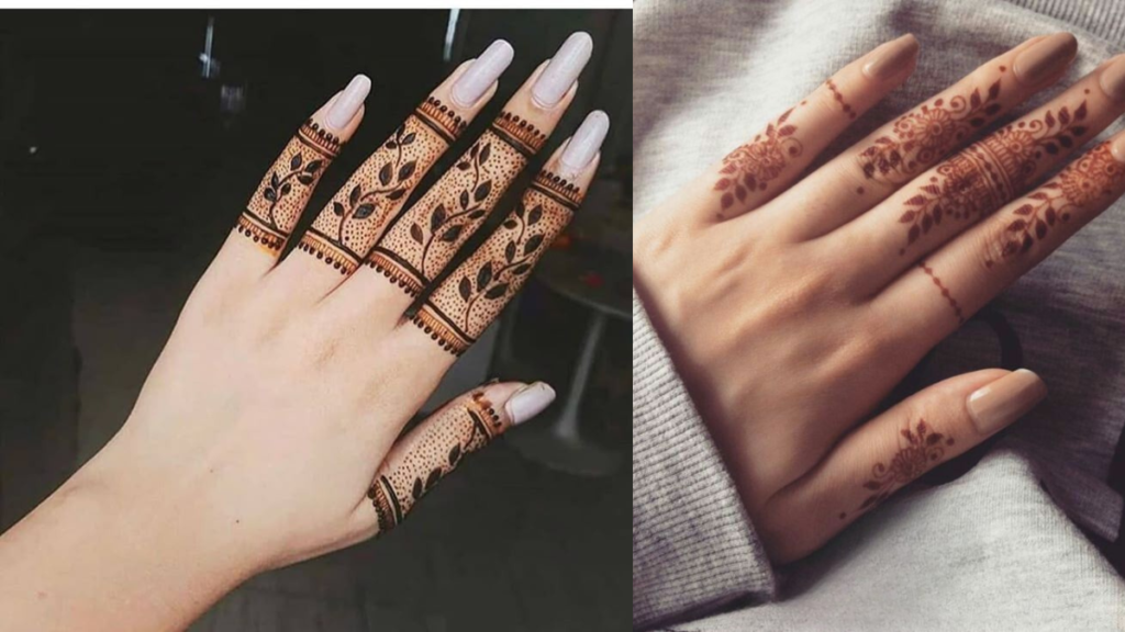 सिर्फ उंगलियों पर छोटे-छोटे पैटर्न बनाएं, हथेली खाली छोड़ दें। यह डिजाइन सिंपल और स्टाइलिश लुक देता है।
