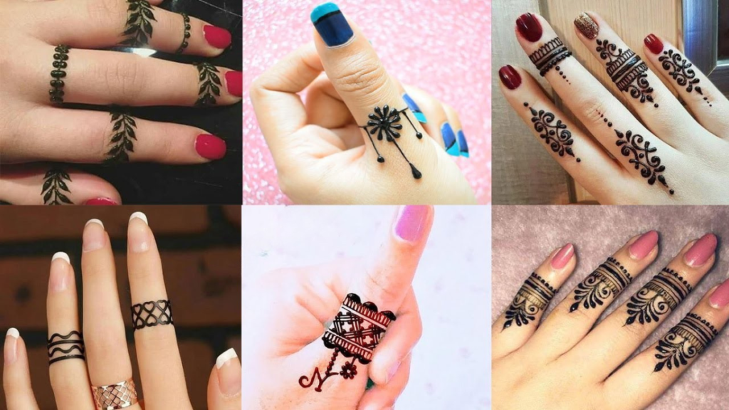 हर उंगली के बेस पर रिंग जैसे पैटर्न बनाएं और बीच में डॉट्स या लाइन जोड़ें। यह मिनिमल और ट्रेंडी लुक देता है।