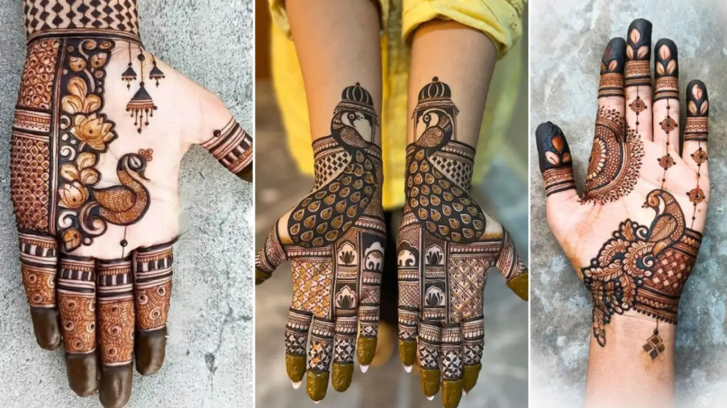 मोर के पंख या आकृति को मेहंदी में दर्शाया जाता है। यह शुभता और सुंदरता का प्रतीक है।
