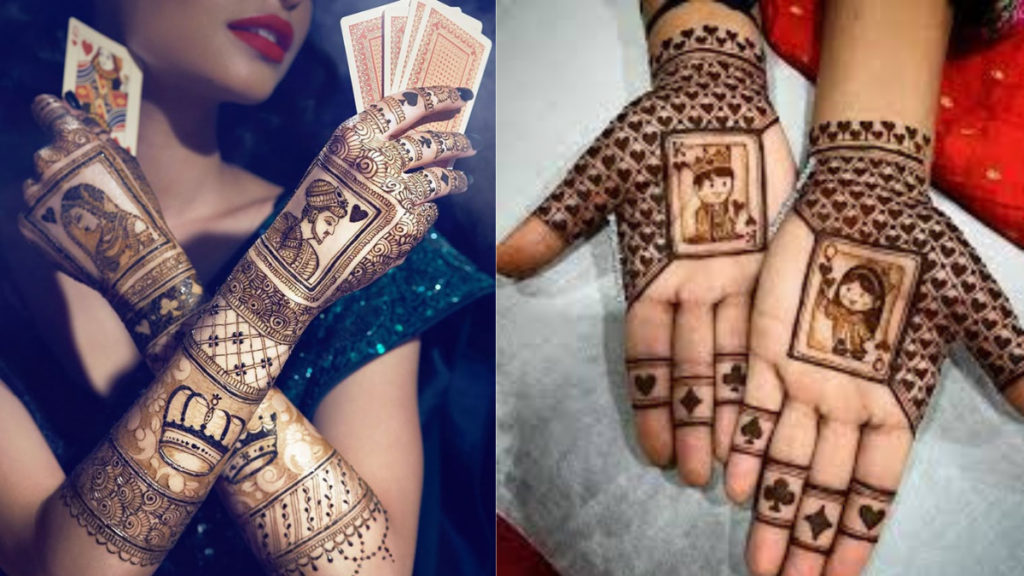 किंग और क्वीन कार्ड के मोटिफ्स मेहंदी में जोड़े जाते हैं। यह कपल्स के बीच खासा लोकप्रिय है।
