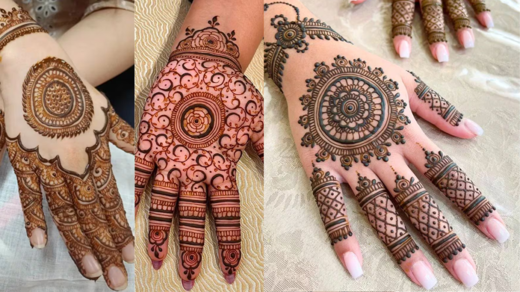 हथेली के बीच में मंडला सर्कल बनाएं, जो पारंपरिक और सिंपल दोनों है।जो हर उम्र के लिए आकर्षक है।जो सिंपल और आकर्षक हैं।जो मॉडर्न लुक देता है