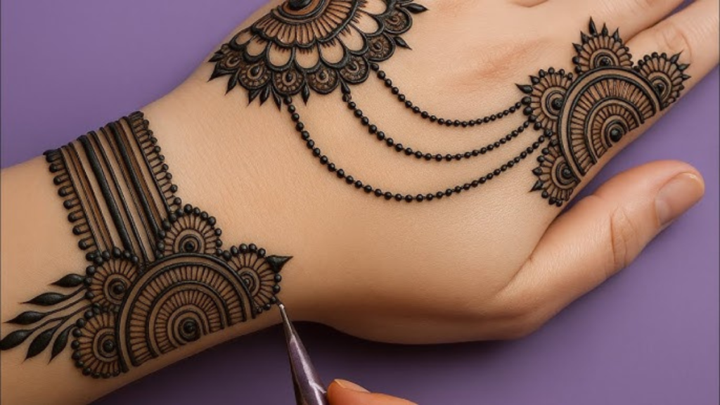 कलाई से फिंगर तक चेन जैसा पैटर्न बनाएं, जो मॉडर्न लुक देता है।जो हर उम्र के लिए आकर्षक है।जो सिंपल और आकर्षक हैं।