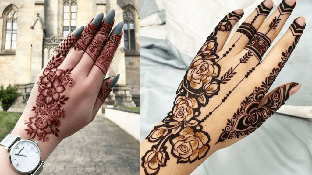 उंगलियों से कलाई तक जुड़ते दोहरे फूलों के फ्रेम हाथों को देता है आकर्षक और मॉडर्न लुक।
