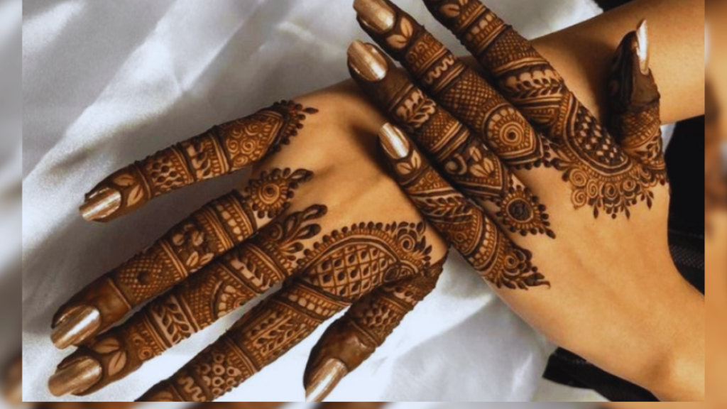 जाली (नेट) पैटर्न वाली मेहंदी स्टाइल बहुत ट्रेंडी है।