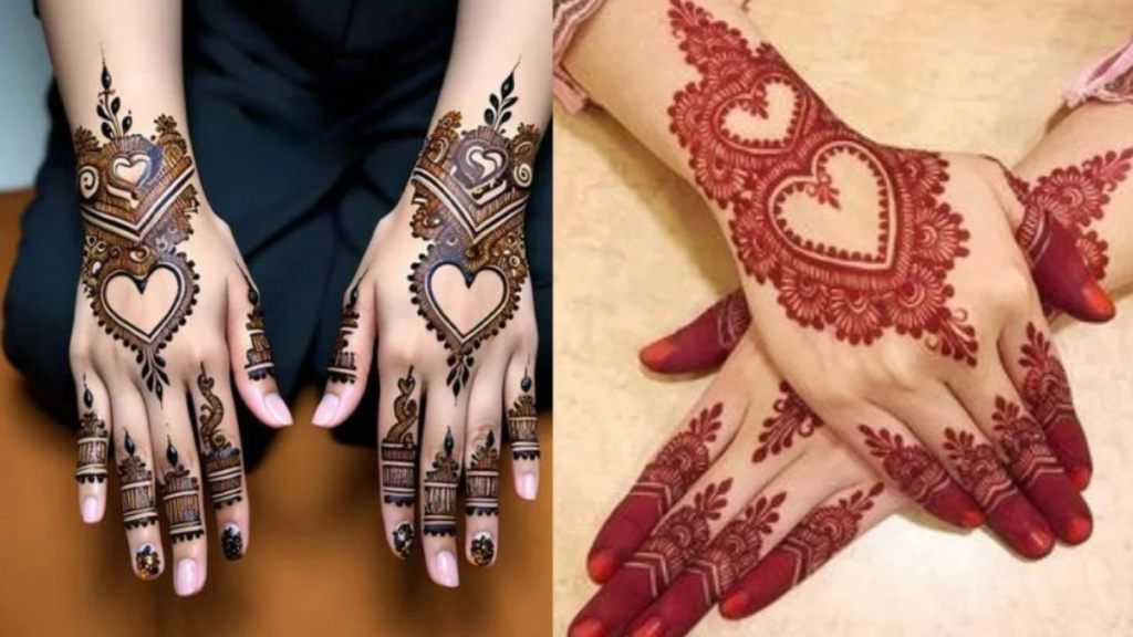 हार्ट शेप पैटर्न वाली मेहंदी डिजाइन क्यूट और ट्रेंडी लगती है। खासकर युवतियों के बीच यह काफी पसंद की जाती है।