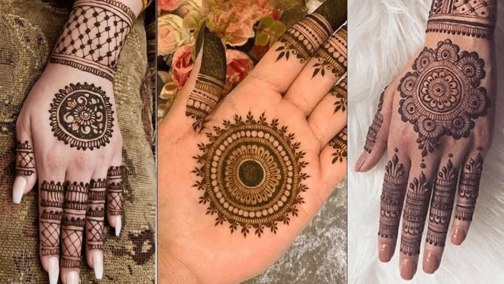 गोल आकार की टिक्की हाथों के बीच में बेहद खूबसूरत लगती है। पारंपरिक लुक के लिए परफेक्ट।यह डिज़ाइन हर उम्र के लिए उपयुक्त है। हाथों की सुंदरता को निखारने के लिए बेस्ट।
