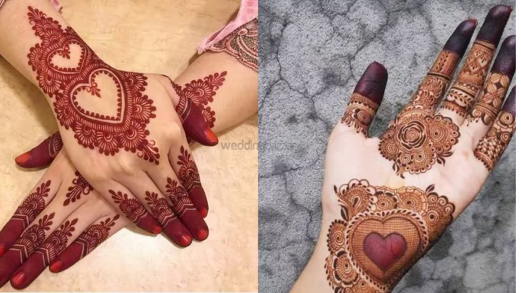 हाथों पर दिल का आकार बनाकर उसमें सिंपल पैटर्न जोड़े जाते हैं।