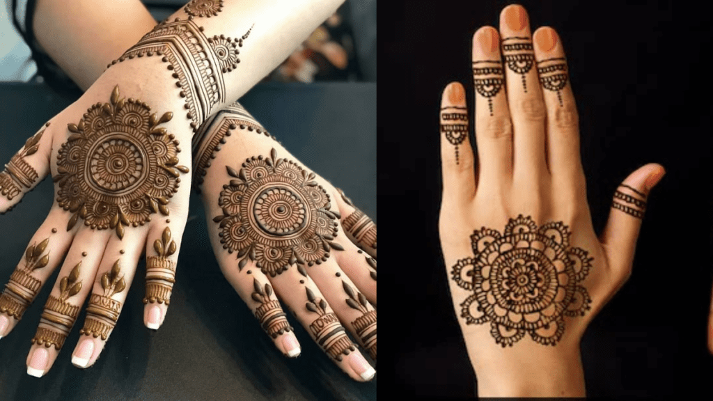 गोलाकार मंडला पैटर्न, जो हाथों के बीच में आकर्षक लगते हैं।