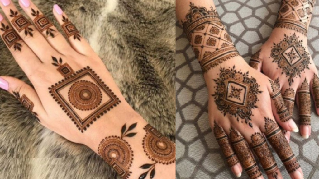 ज्योमेट्रिक शेप्स जैसे त्रिभुज, वर्ग और वृत्त का उपयोग आधुनिक मेहंदी में बढ़ रहा है।