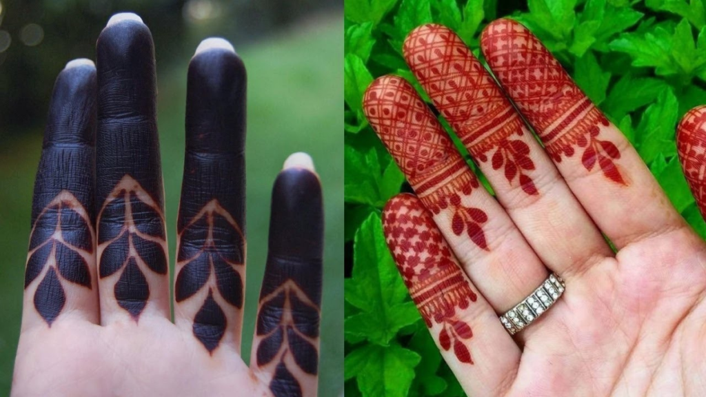 सिर्फ उंगलियों के सिरों पर मेहंदी लगाएं और हल्के डॉट्स या लाइनों से सजाएं। यह मॉडर्न और मिनिमल लुक देता है।